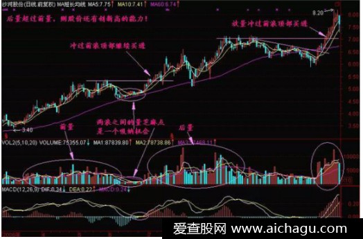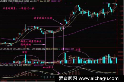 后量超前量,一浪高过一浪!图形特征:(1)股价呈波浪形上升,如果后面的上升浪成交量比前面的上升浪成交量大,称为后量超前量。(2) 后一浪放量上升时,如股价正好通过前一浪顶部,则股价还会涨。