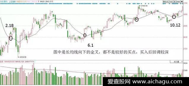 长均线向下的金叉买入,不是最好的买点或者被套。